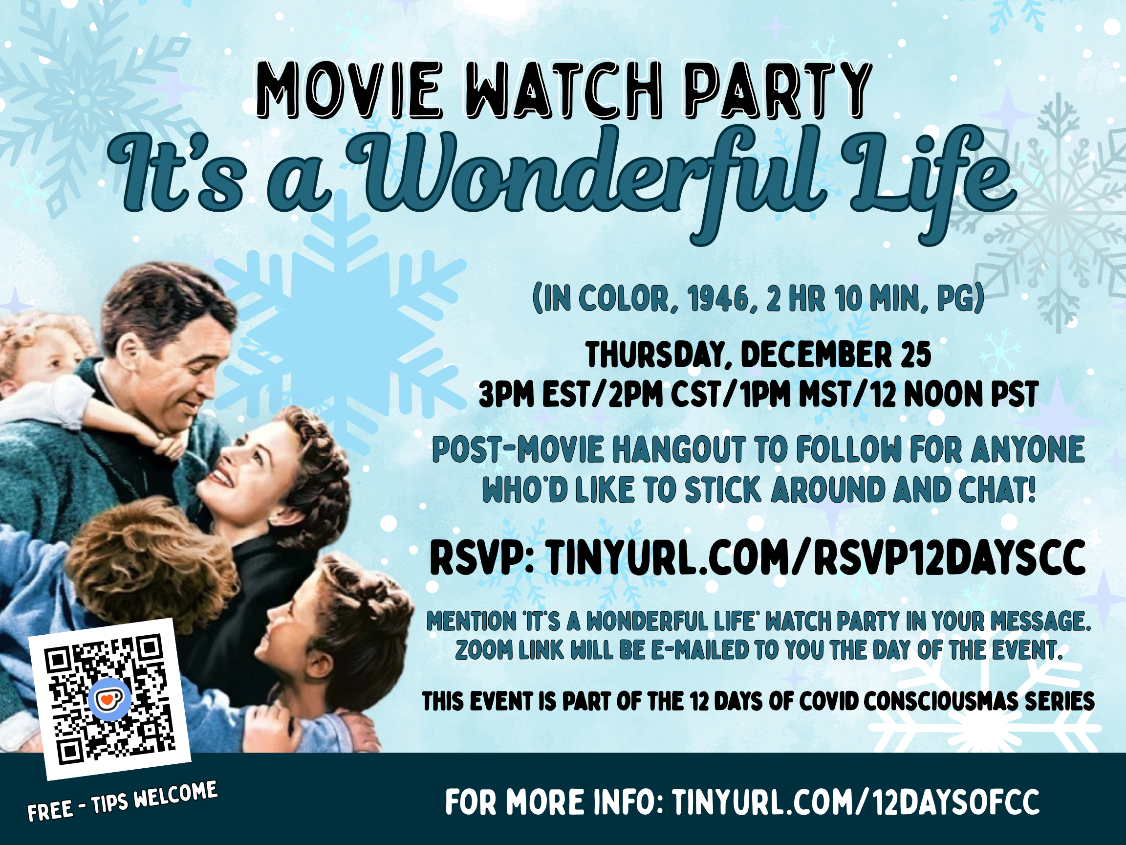 There's plenty more coming up in the 12 Days of Covid Consciousmas - a series of virtual events designed to bring Covid Conscious folks together for the holidays for celebration, connection, and community! All events are free and you're invited to participate at your own comfort level - camera/mic on or off, come and go as you please. All you need is a free Zoom account and internet-connected device.